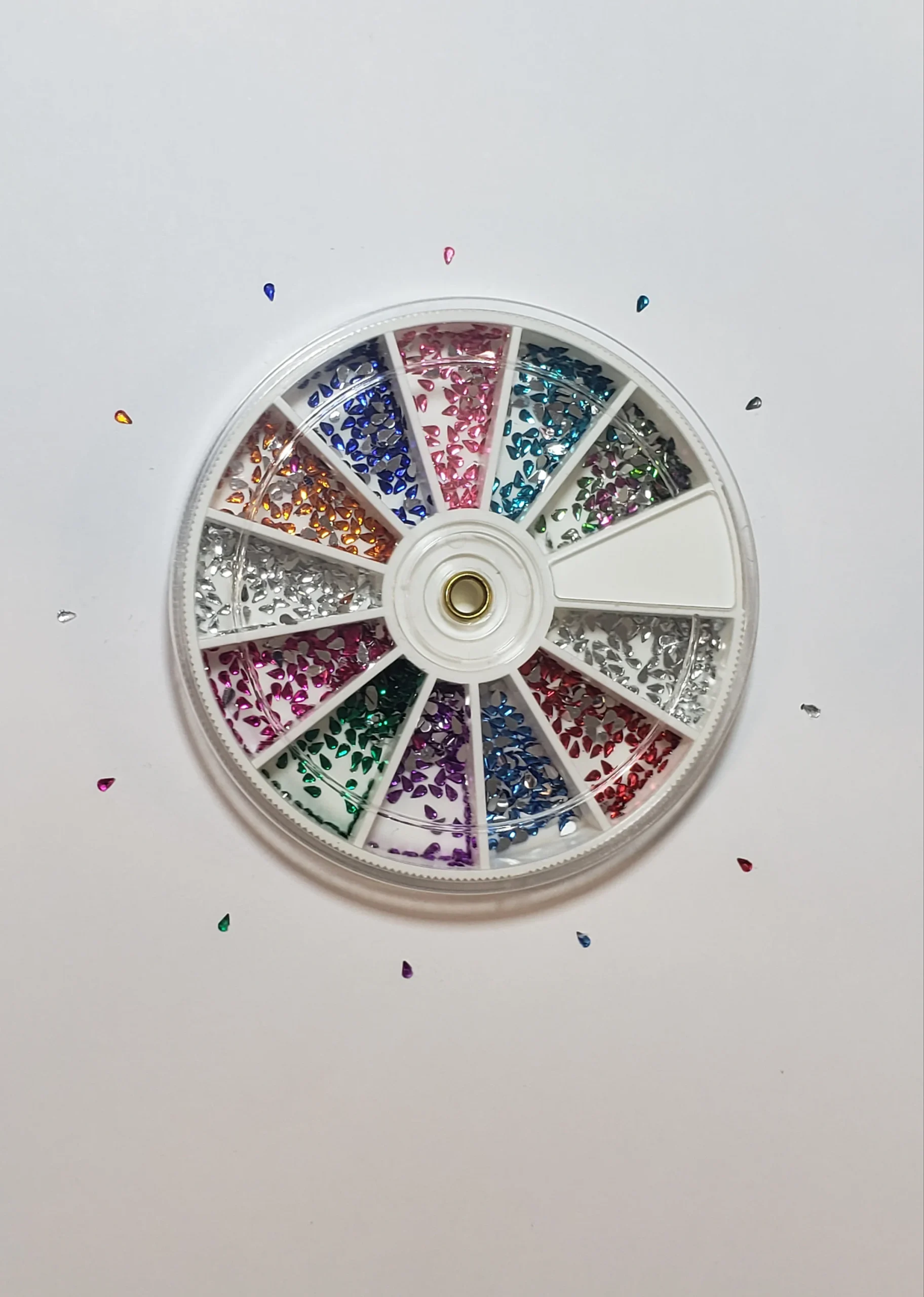 Customize and enhance your nail art with our teardrop rhinestones stored in a compact plastic case.